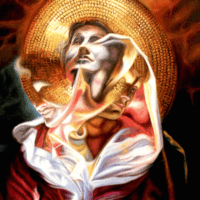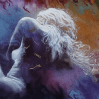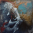 dans un décor astral ,presque portée par lui, où le fond abstrait